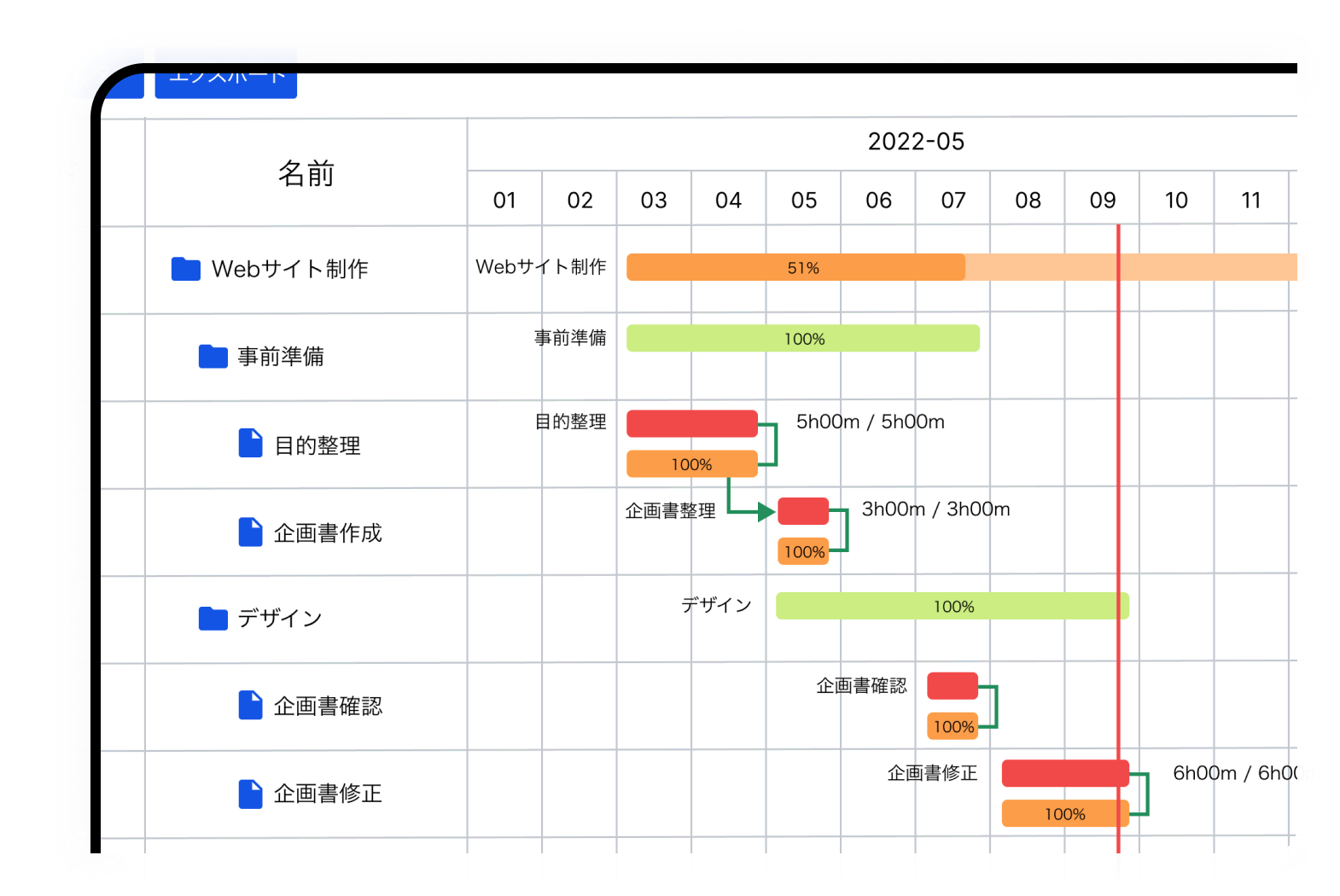工数と連携したガントチャート![]() 工数の予実を ガントチャート上で比較可能 | 工数と連携したガントチャート![]() 機能なし | 工数と連携したガントチャート![]() スケジュール管理がメイン 工数の予実対比は不可 | 工数と連携したガントチャート![]() ガントチャートが作成可能 工数連携には手動運用が必要 |