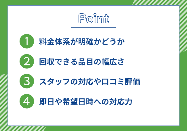 不用品回収業者を選ぶ4つのポイント