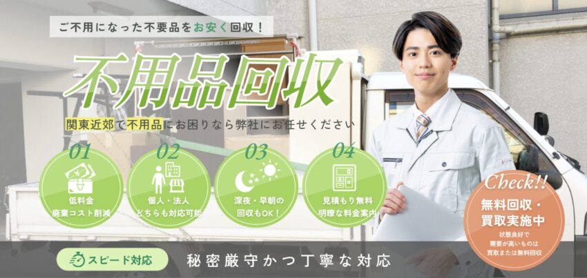 不用品回収は、家庭やオフィスで不要になった家具・家電・日用品などをまとめて引き取ってもらえる便利なサービスです。