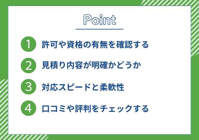 ホームページや見積もり時に、適切な許可を持っているかを確認しましょう。