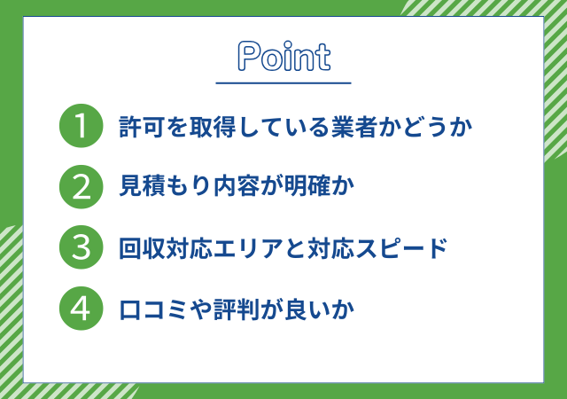 トラブルを避け、納得のいくサービスを受けるためにも、以下の4つのポイントに注目して選びましょう。