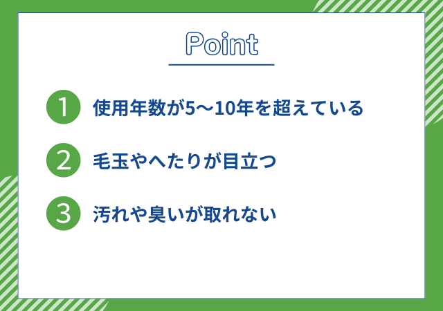 見た目や使用感が気になる場合は、買い替えを検討するとよいでしょう。