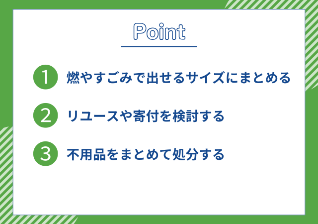 毛布以外にも処分したいものがある場合は、不用品をまとめて処分することで費用を抑えられる可能性があります。