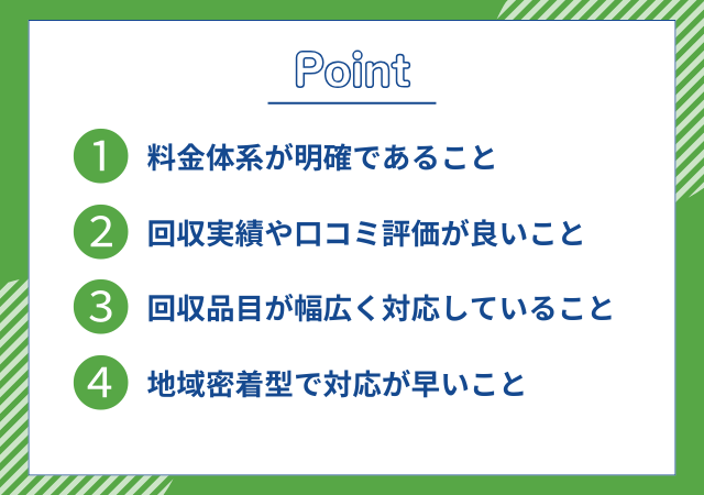 回収費用や追加料金の有無がはっきりと提示されている業者は信頼性が高いといえます。