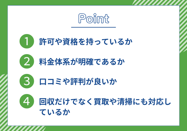 ここでは、失敗しない業者選びのために確認しておきたい、以下4つのポイントをご紹介します。